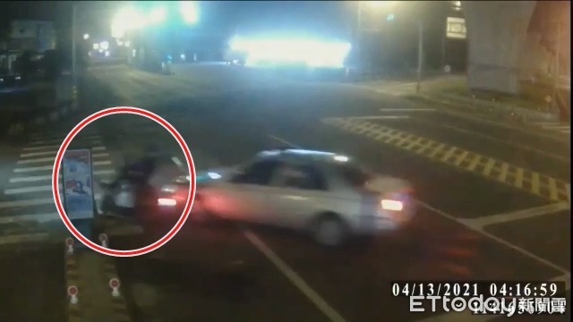 ▲▼王男(紅圈處)騎車被撞倒後要逃跑,連姓主嫌2車攔阻後擄走王男。(圖/記者游芳男翻攝,下同)