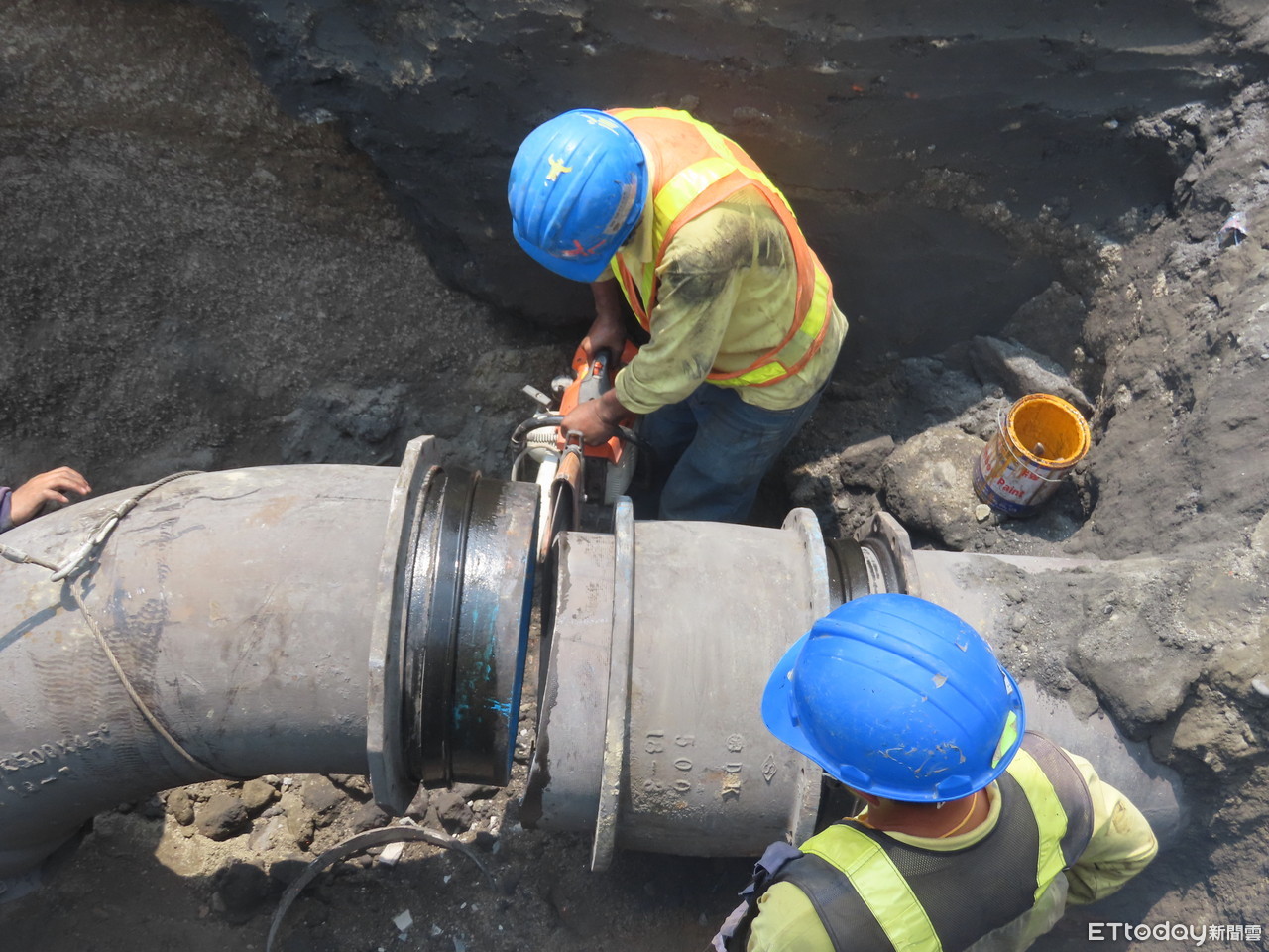 ▲台水六區處表示,東區生產路進行2000m/m管線汰換工程,原定停水44小時施工,經過台水人員日夜趕工,提早於14日下午3時完工,預計晚上7時陸續恢復供水。(圖/記者林悅翻攝,下同)