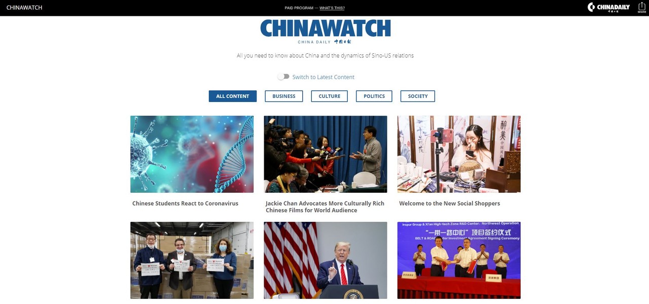 該篇文章的作者多特森(John Dotson)表示,中國官媒不斷在美國主要報紙如《華盛頓郵報》、《華爾街日報》和《紐約時報》等,放入付費的插頁廣告,這些廣告通常都以「中國觀察」(China Watch)、「中國焦點」(China Focus)為主題進行宣傳,乍看像是報刊本身的新聞或社論,實際上卻是中國政府的宣傳內容。