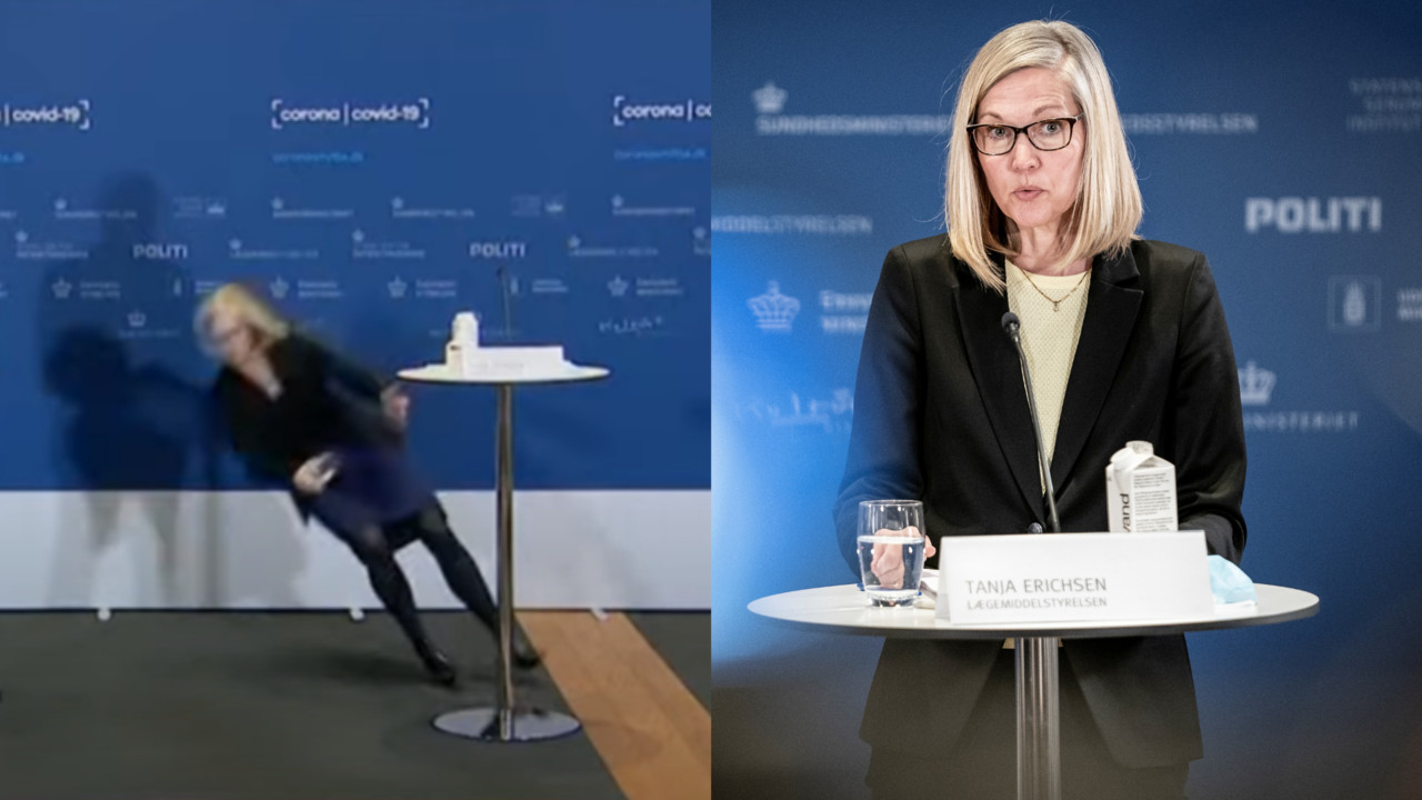 由於接種後有血栓風險,丹麥成為全球首個完全停止AZ疫苗施打的國家。而就在丹麥衛生局長今在新聞記者會上發言時,在旁的藥物管理局主任埃里克森(Tanja Erichsen)突當場昏倒在地,把現場人士都嚇壞。