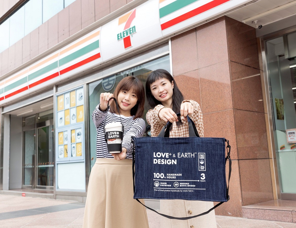 7-11將門市回收的寶特瓶、鮮乳空瓶,委由Story Wear設計再生,並以愛多一點、地球負擔少一點「LOVE+ & EARTH-」的概念設計出2款超實用永續商品,4/19起開始預購,首先為「飲料杯袋」,不僅使用回收寶特瓶製成,還能回收進寶特瓶分類箱,再次回收利用。