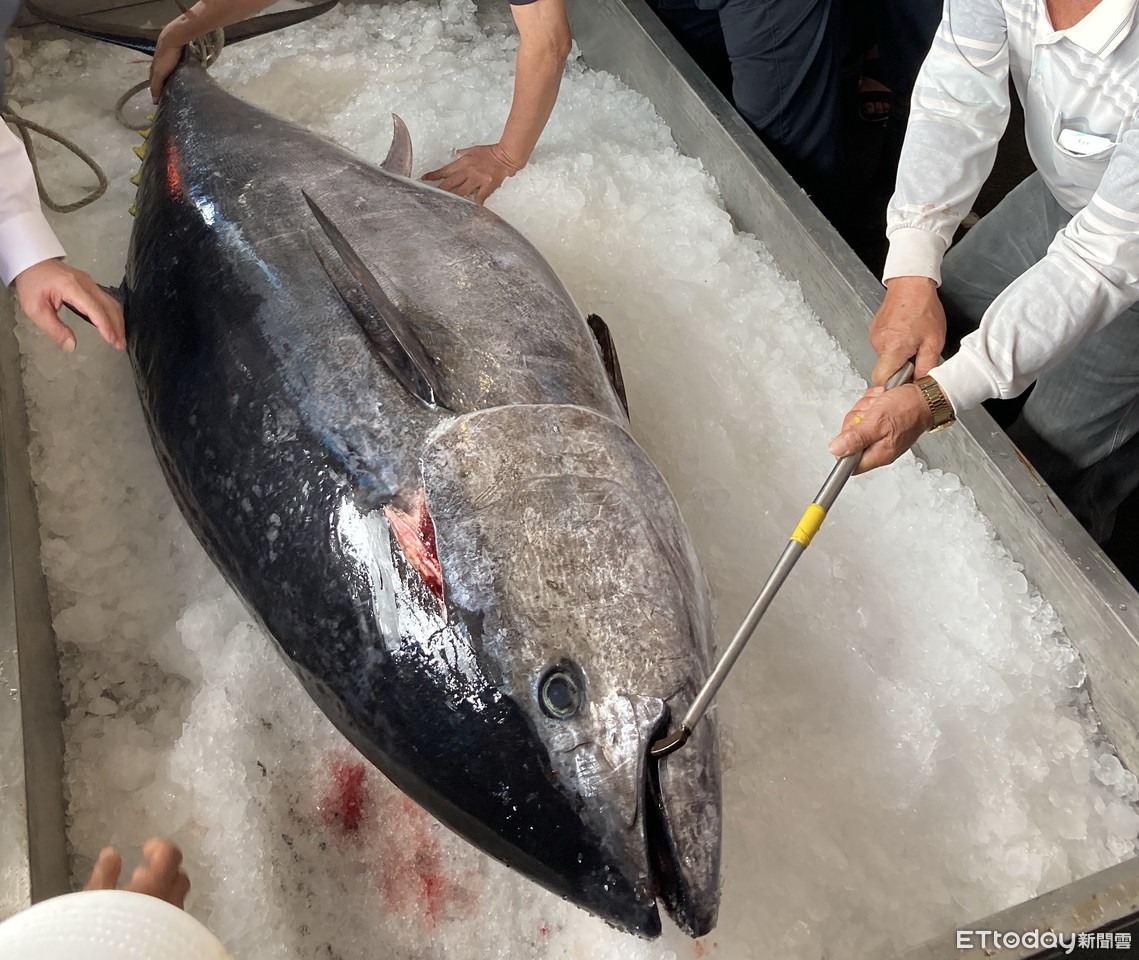 2021蘇澳第一鮪16日拍賣,這尾重183公斤肥胖的黑鮪魚,在宜蘭縣長林姿妙加持下,以每公斤8,300元賣出,民眾直呼真是「黑金」,而捕獲黑鮪魚進帳1百50多萬元的蘇澳籍漁船「新永泰號」船長郭彥彬是笑開懷。