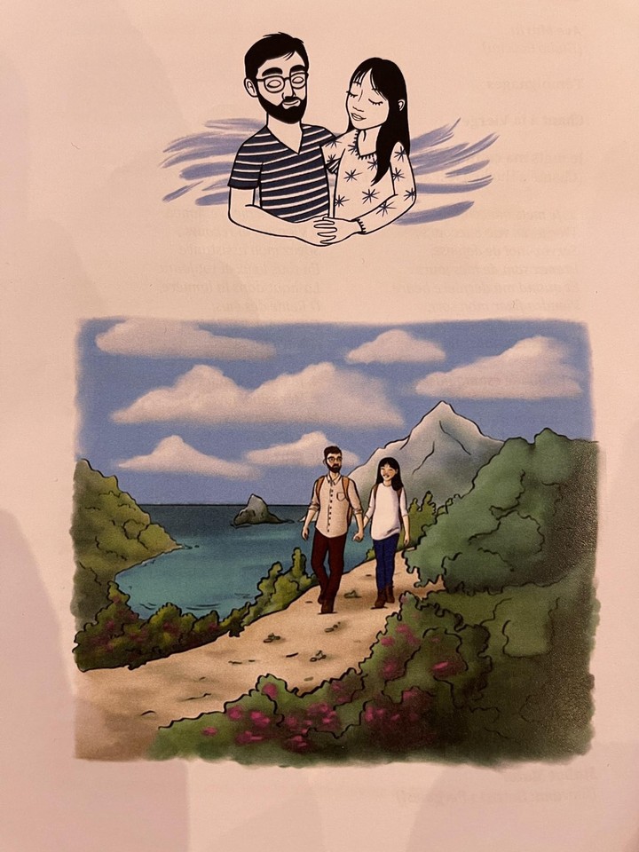 ▲法籍男子於太魯閣號意外罹難,家屬近日於巴黎的天主教堂為他舉行告別式,現場放上女友繪製兩人於台灣旅遊的作品。(圖/讀者提供)