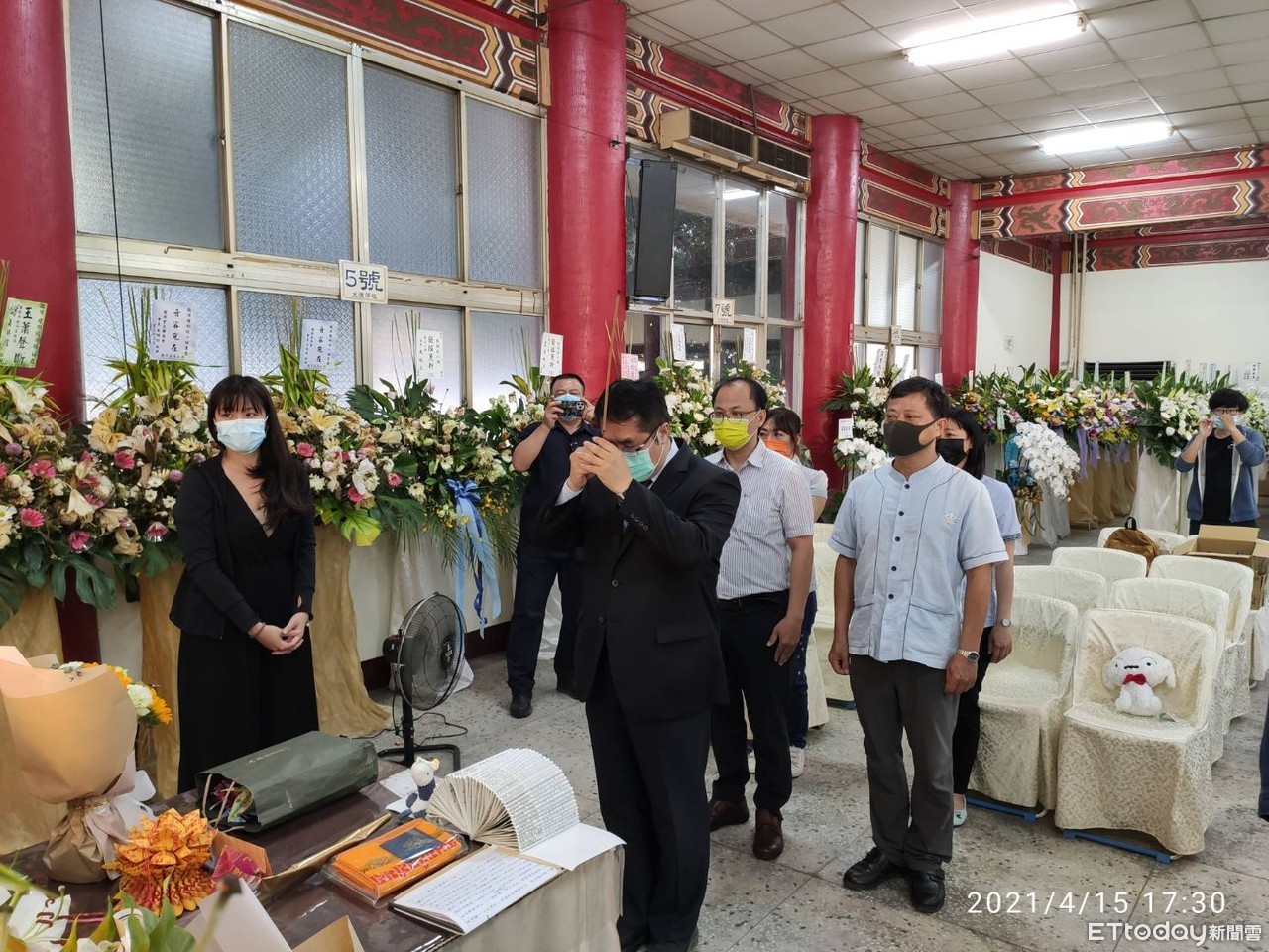 ▲台南市長黃偉哲,15、16日又特地前往南區殯儀館探視關懷家屬,並向死者上香。(圖/記者林悅翻攝,下同)