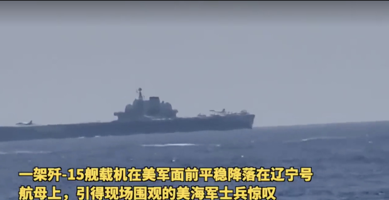 陸官媒《環球時報》今(17)日在微博釋出一段由美海軍第七艦隊在海上拍攝的影片。影片中,一架解放軍殲-15戰機在海上執行降落遼寧號航母的訓練,戰機降落後,美海軍還傳出一陣驚嘆。此外,影片還拍下遼寧號周邊的052D型成都號驅逐艦和055型南昌號驅逐艦,一前一後地執行護航任務。