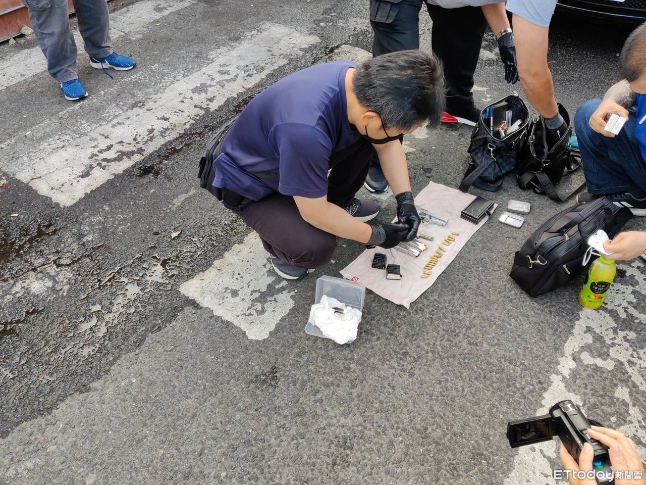 ▲高市刑大攔下劉男座車,在車上搜出手槍、子彈及毒品等物。(圖/記者洪靖宜翻攝)