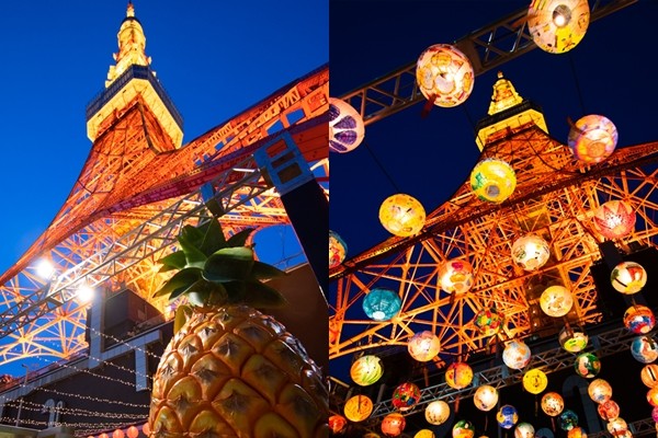 ▲東京鐵塔廣場台灣祭(美食活動)17日舉辦點燈儀式。東京鐵塔首度施以鳳梨意象的鑽紗光雕,化為「全球最大的台灣金鑽鳳梨」。(圖/台湾祭)