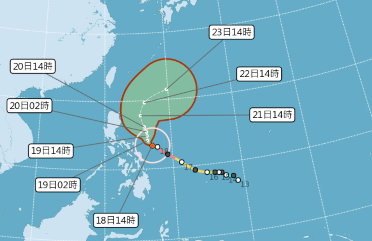 ▲舒力基強度已達顛峰,之後將會逐漸減弱。(圖/氣象局)