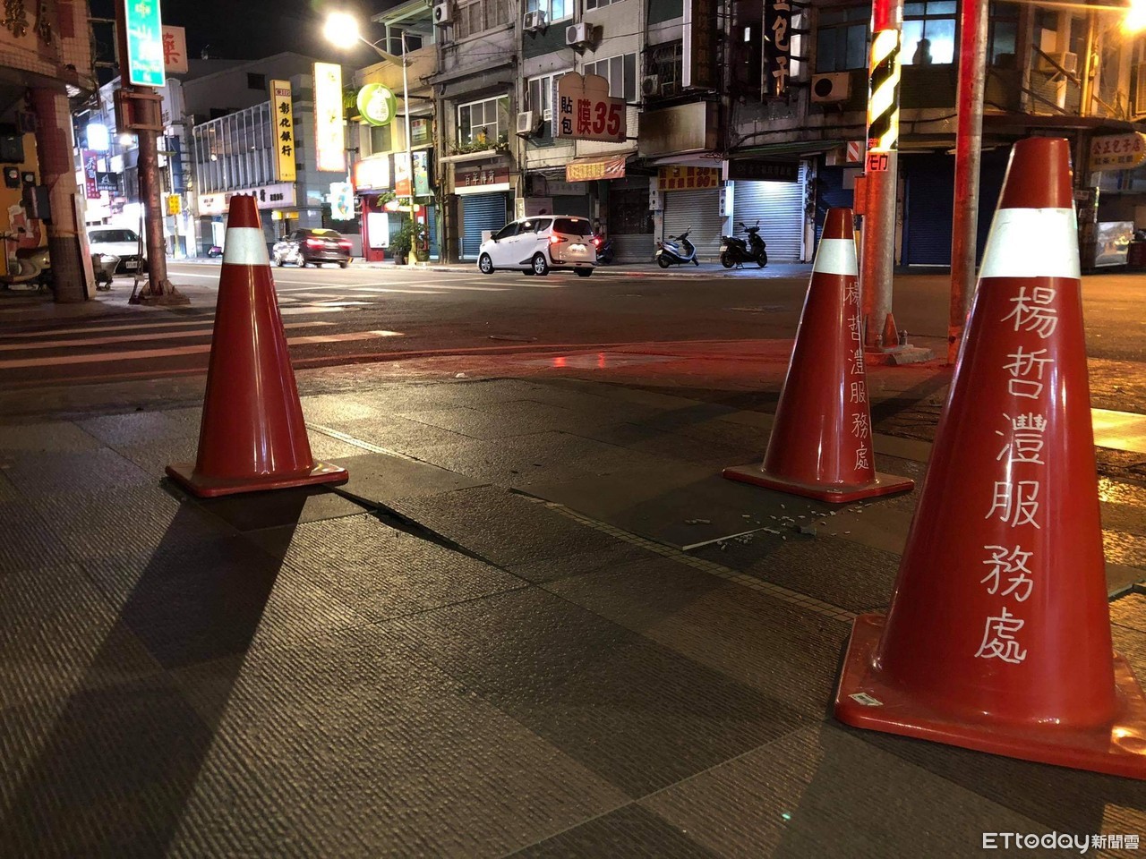 ▲花蓮強震,奶油酥條店外騎樓地磚凸起。(圖/記者黃彥傑翻攝)