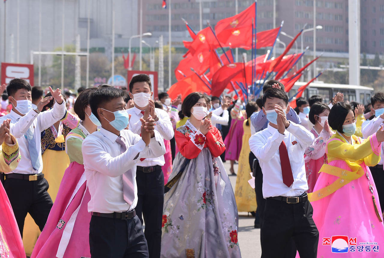 ▲北韓平壤居民歡慶太陽節。(圖/達志影像)