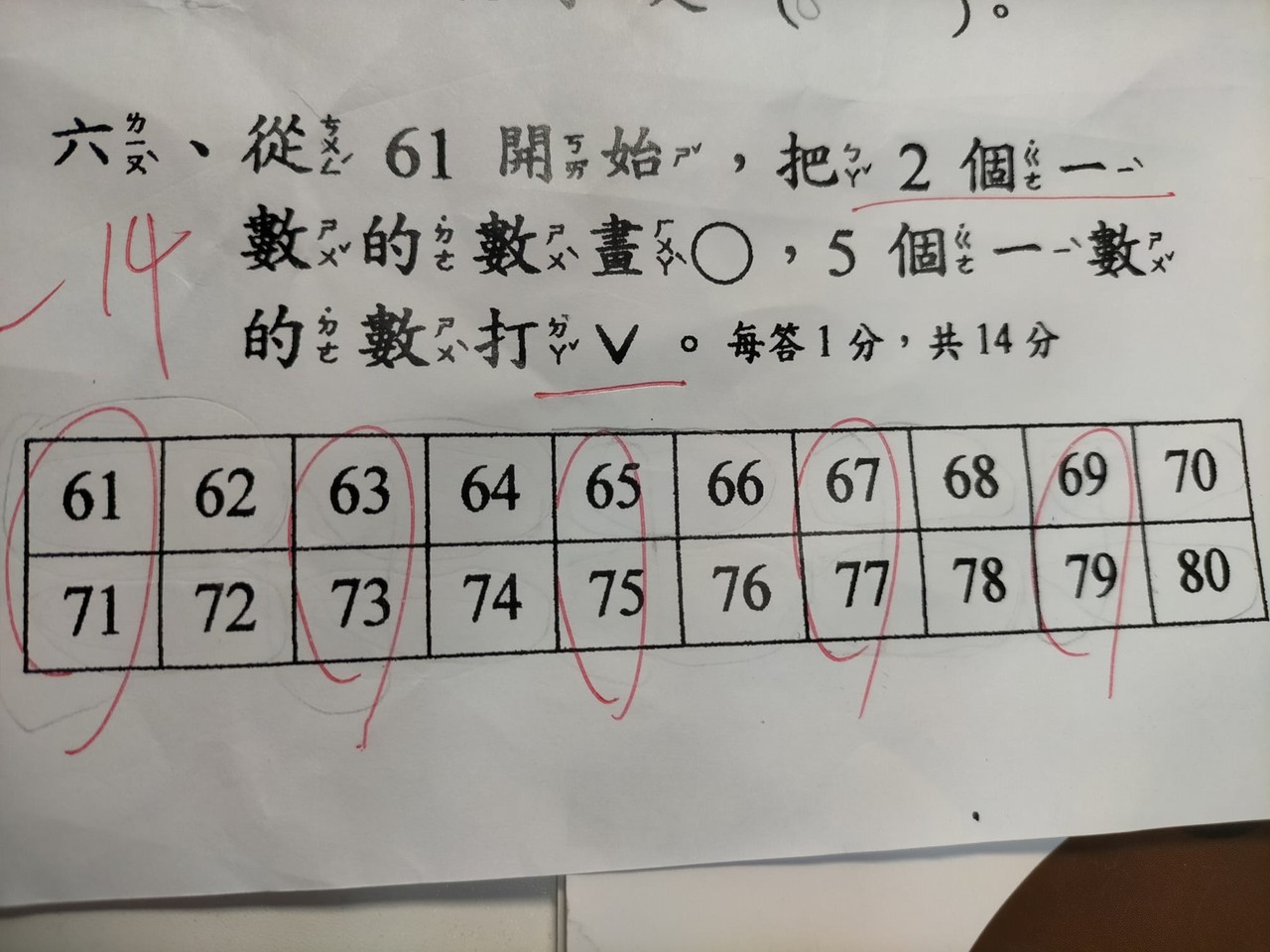 這位媽媽在《爆怨2公社》貼出照片,只見她求救的是一個數學題,「從61開始,把2個一數(ㄕㄨˇ)的數(ㄕㄨˋ)畫O,5個一數(ㄕㄨˇ)的數(ㄕㄨˋ)打V」。