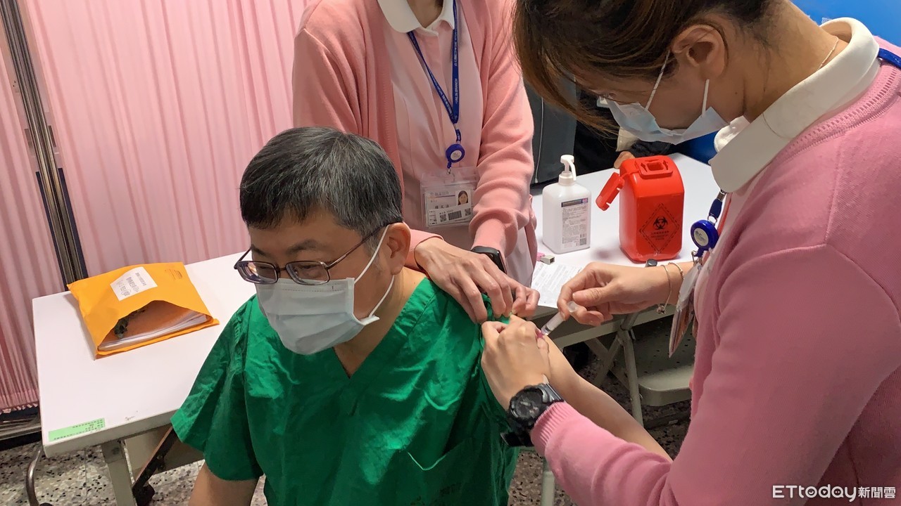 ▲臺大醫院雲林分院3月23日日由院長黃瑞仁與其他9位醫護同仁率先施打AZ(AstraZeneca)疫苗。(圖/記者蔡佩旻攝)