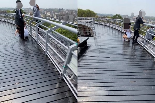 彰化八卦山天空步道總長約1000公尺,步道最高處有16公尺,是當地人假日休閒散步的景點之一。不過,有網友19日在臉書「爆料公社公開版」PO出一段39秒的影片,只見4名年輕男女不顧危險攀爬護欄,其中一人甚至爬到步道外側坐著,被路過的婦人規勸,還大聲回嗆「X你娘,我認識妳喔」。
