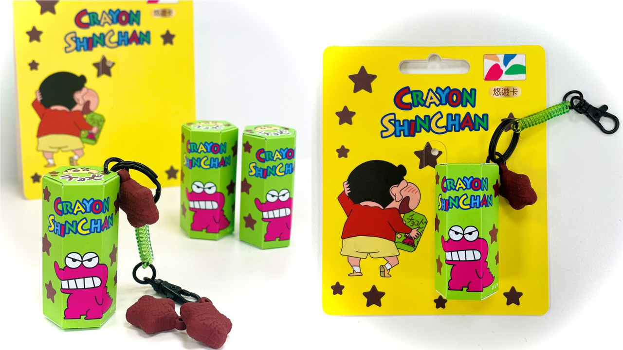 全新的「蠟筆小新造型悠遊卡-巧克力餅乾盒」,小新經常抱在懷裡的巧克力餅乾縮小成能夠隨身攜帶的立體悠遊卡,且餅乾盒旁還掛了3塊巧克力餅乾,蠟筆小新迷一定要買來收藏。