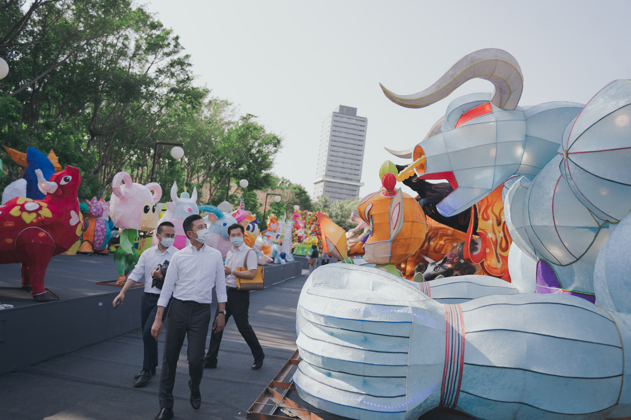 林智堅表示,台灣燈會因疫情停辦,市府民調顯示有7成受訪者「希望燈會作品再次展出」,來自各校園、單位許多曾參與花燈製作的小小燈藝師、家長們也引頸期盼,花燈作品有展出機會。新竹市特別推出光臨藝術節系列活動,展出全部花燈,各校作品精美又有創意,市府已找來專業評審評選花燈,將選出「燈王」與優秀作品,藉此鼓勵小小燈藝師們。