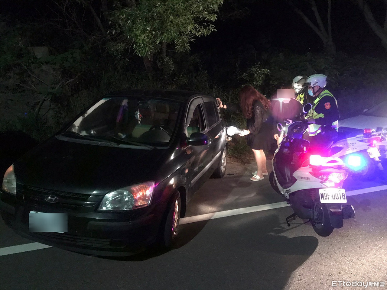 警方表示,西門派出所長黃明祥與警員呂元皓、王信翔,20日凌晨1時許執行巡邏勤務行時,經客雅山墳墓區時,發現1部形跡可疑的車輛,車上還坐著1名女子,便上前盤查;這名詹姓女子見警方前來便向警方表示,本來和男友一起開車夜遊,因為沒注意油表沒油了,才會停在路邊,也因為男友獨自走路去買油,才留自己在這。