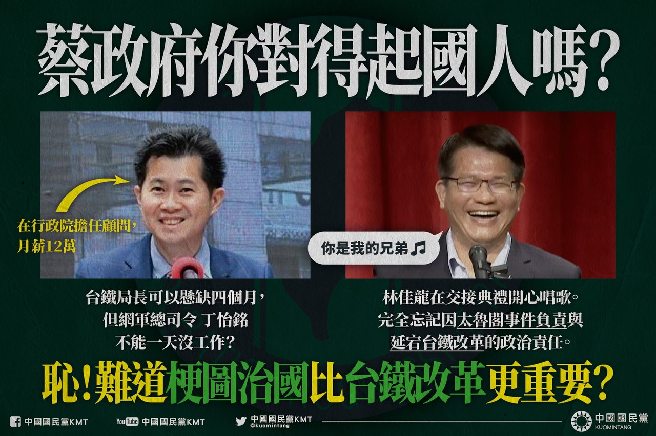 ▲國民黨批評,太魯閣事故後蔡政府還在搞政治酬庸。(圖/翻攝自國民黨臉書)