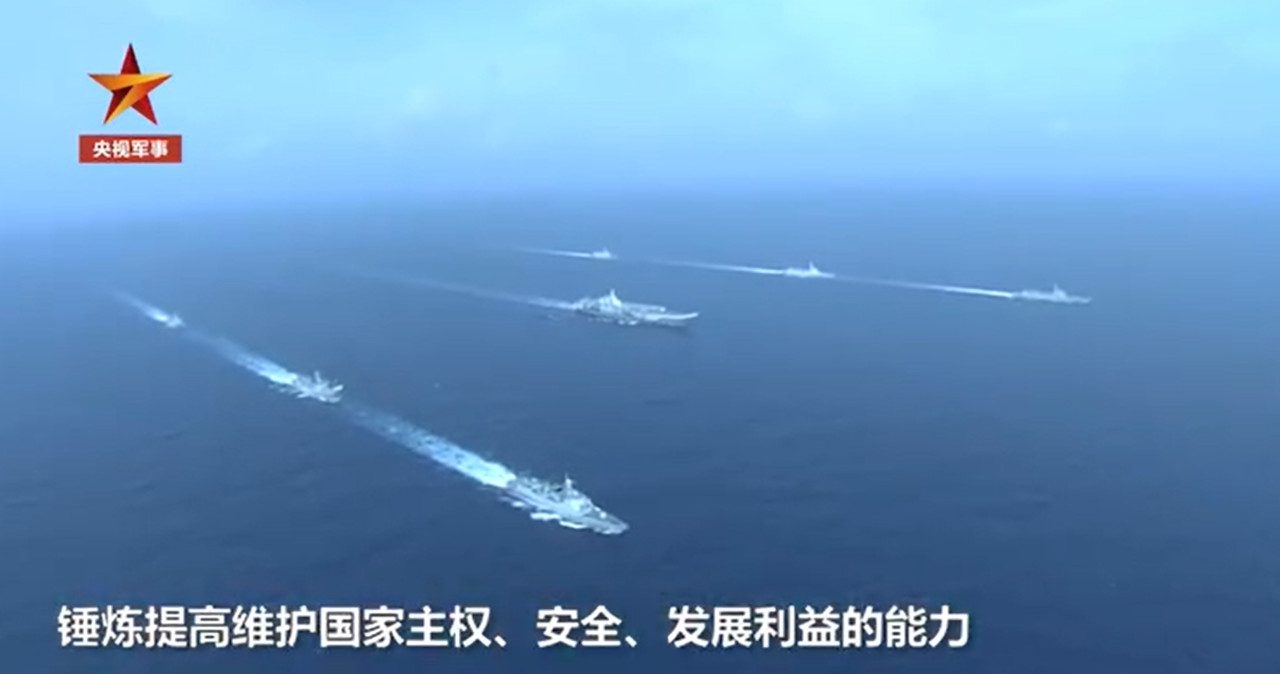 ▲大陸官媒公布遼寧號在台灣周邊海域訓練畫面。(圖/翻攝自央視軍事)