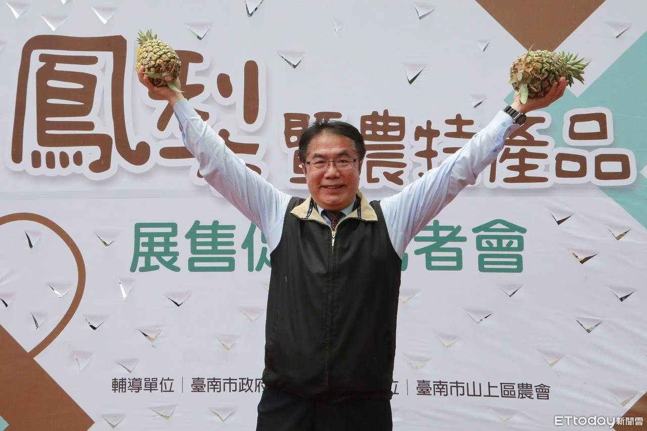台南市長黃偉哲,繼透過東森購物狂賣關廟金鑽鳳梨6000公斤後,22日再度率山上區等7個農會及30多位青農北上板橋區農會,共同行銷台南當季優質的山上16號「甜蜜蜜鳳梨」,黃偉哲發揮最強直播主銷售功力,在大台北地區14間農會總幹事大力相挺下,現場熱賣6千箱台南鳳梨,並與眾人分享好吃的台南鳳梨乾。