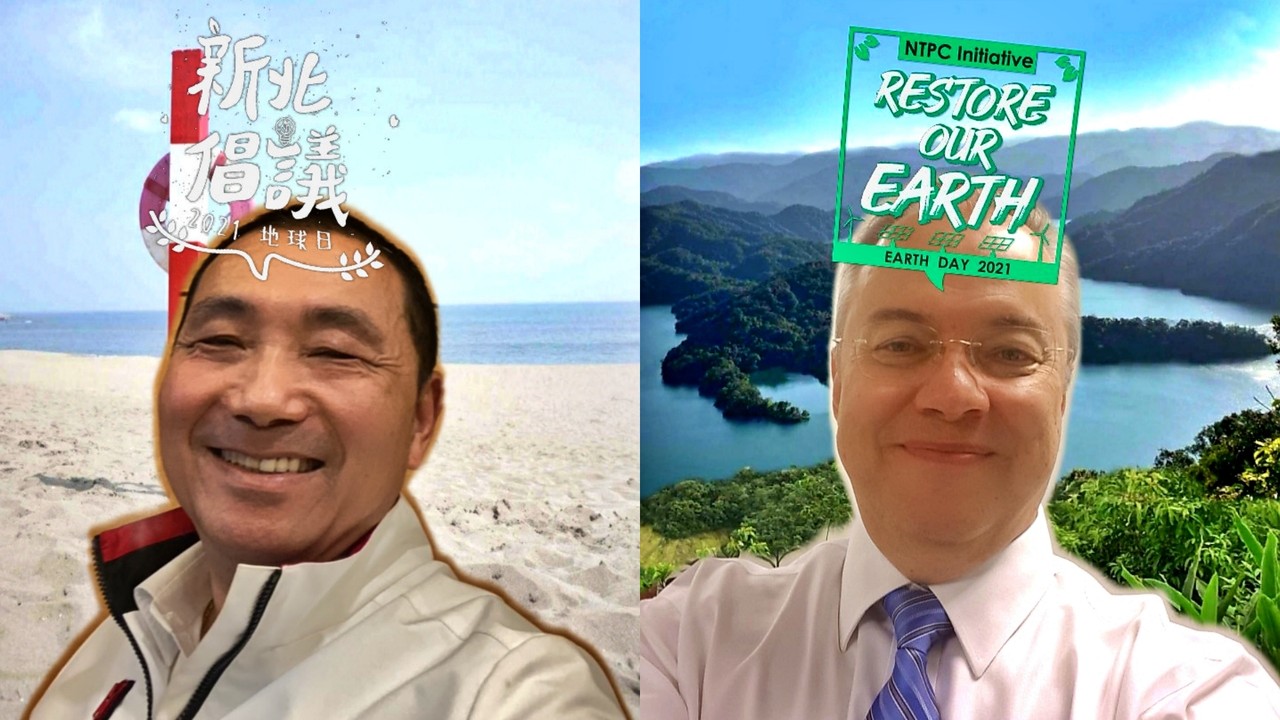 ▲422地球日!侯友宜提「新北倡議」,駐台使節玩起濾鏡響應。(圖/新北市環保局提供,下同)