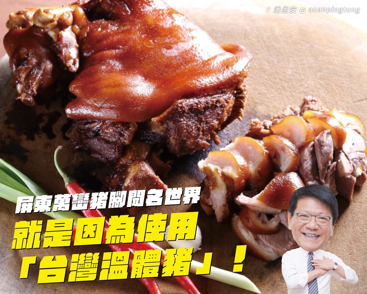 潘孟安說,很遺憾聽到有立委在國會殿堂,惡意抹黑萬巒豬腳並非使用台灣豬的言論,「抹煞地方產業的努力,我們絕對要以正視聽」。
