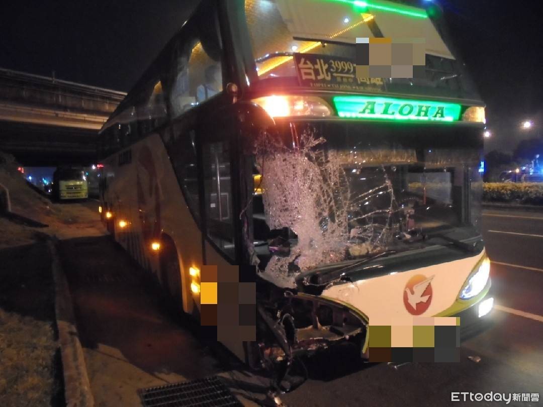 ▲國道1號南向336公里仁德路段,4月22日深夜發生營大客車追撞前方2部小客車,造成2部小客車駕駛及乘客共3人受傷送醫。(圖/記者林悅翻攝,下同)