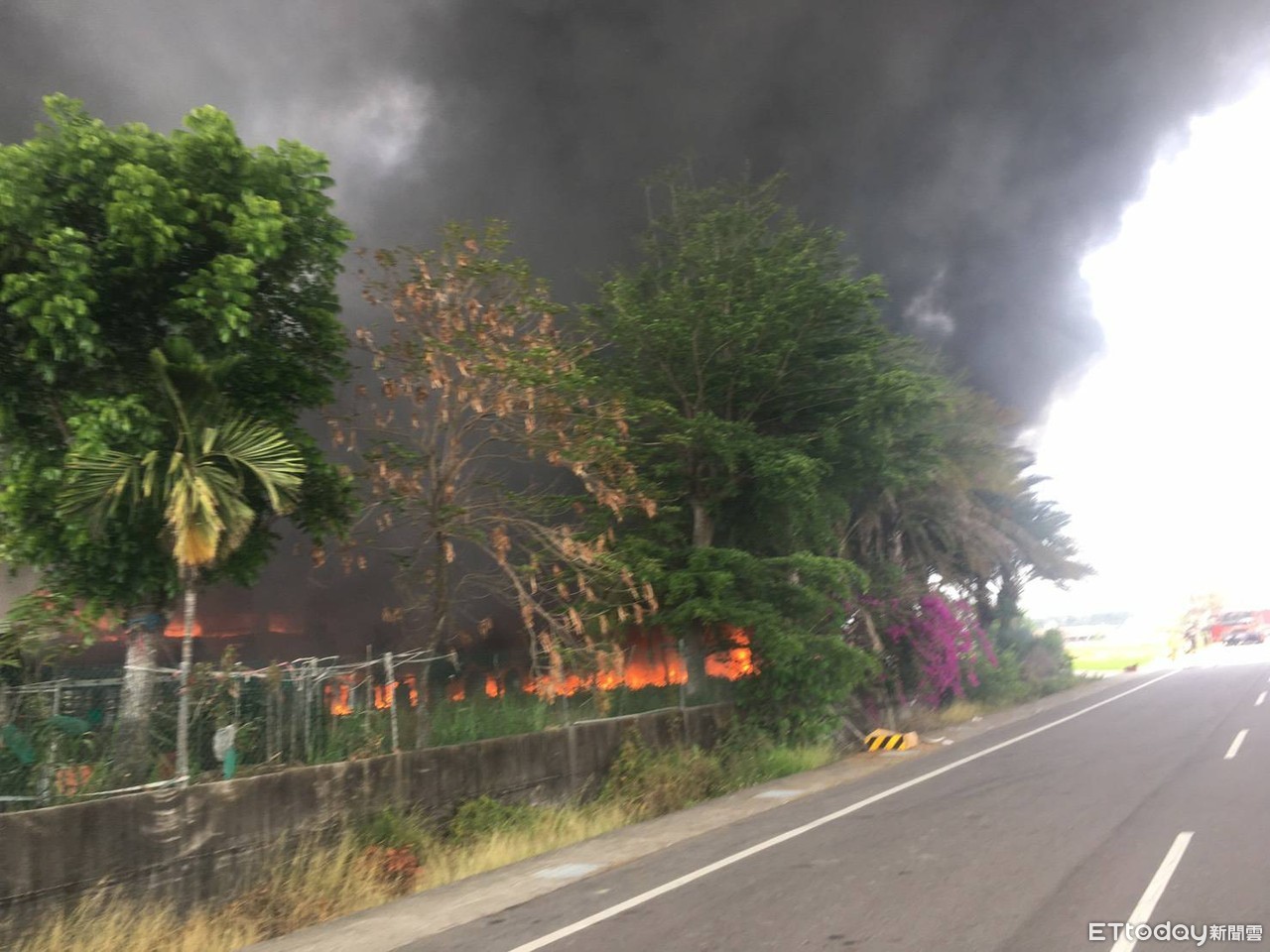 ▲現場烈焰火舌及濃煙四竄。(圖/記者翁伊森翻攝)