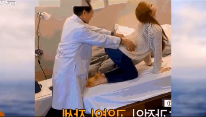 ▲正妹接受韓式整骨的姿勢和表情引人遐想。(圖/翻攝自Liveleak)