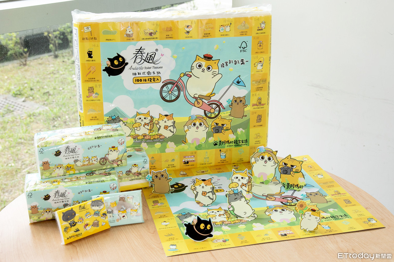 在生活周遭備好「春風黃阿瑪抽取式衛生紙」,單包裝的超可愛設計,讓人每抽一次衛生紙就得到一次好心情。主張「用溫柔呵護地球」的春風,製程也選擇運用風力發電的潔淨能源生產,不含螢光劑的柔韌紙質,也要讓貓主子和粉絲用得格外安心。