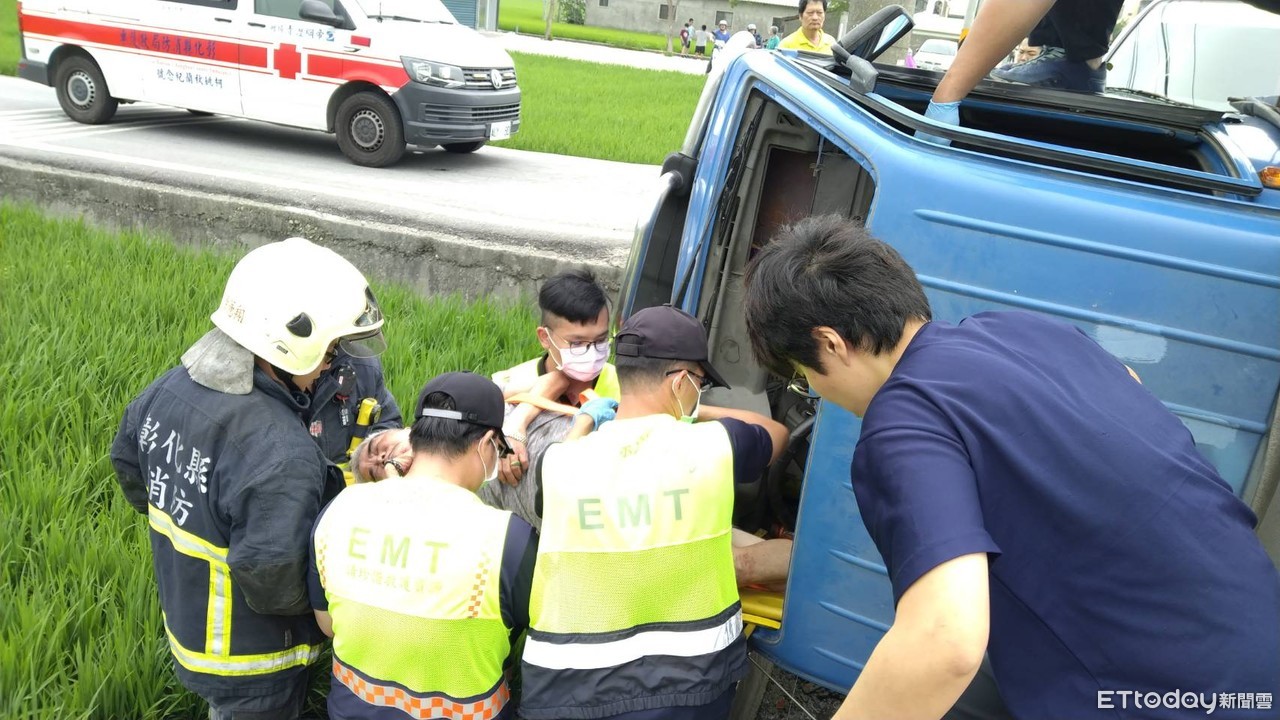 這起車禍事件發生在下午1時左右,彰化消防局獲報後緊急出動福星、溪湖極埔鹽等消防分隊出動2輛消防車、救護車及8名消防救護人員前往,現場疑似為廂型車與小貨車發生事故;陳男駕駛的小貨車翻覆路旁,夫妻雙雙受困車內,另廂型車駕駛陳女及車上4名美語補習班學生無受困情形。