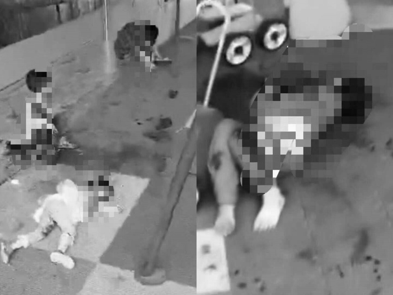 ▲孩子臥倒血泊。(圖/翻攝自微博,下同)