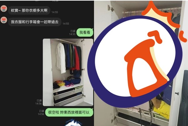 只見照片中,原本只用一半的衣櫥,另一半的空間全被塞滿,「掛衣的空間直接歸零,所有衣服就像鹹菜一樣擠在一起」,怕女友彎腰找衣服很累,把上層讓給對方,自己用下層的,「每次找衣服直接坐著找,還有可能挖到土石流,唉不想努力了」。