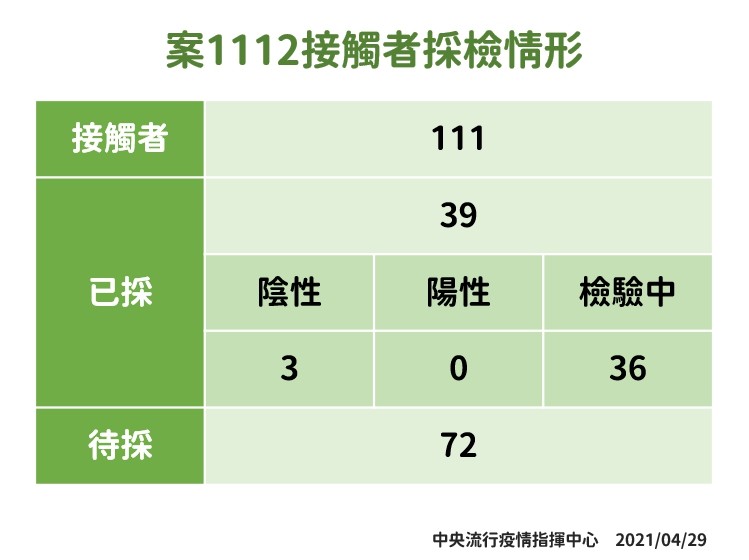 ▲案1112接觸者採檢情形。(圖/中央疫情指揮中心提供)