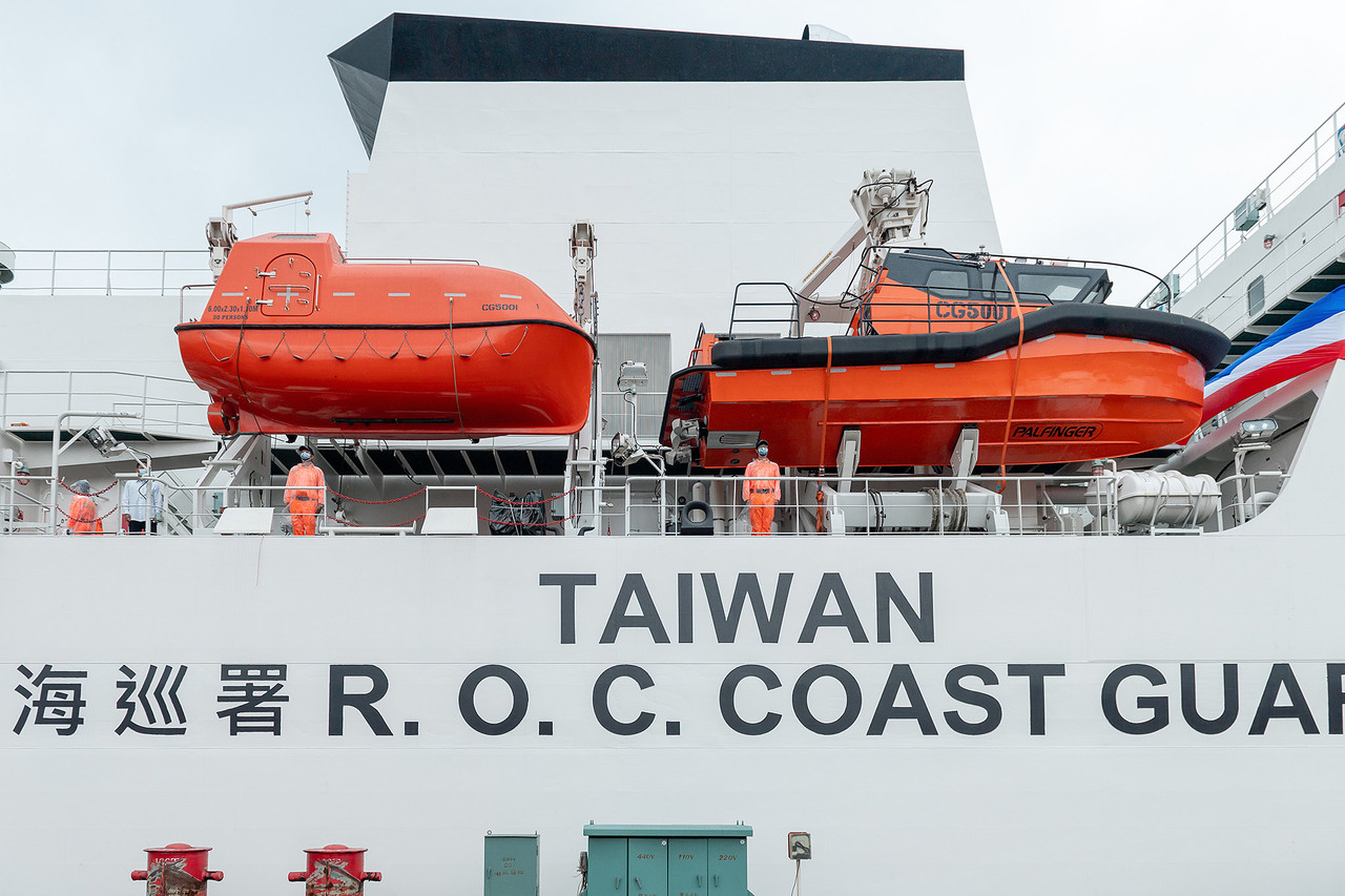 總統蔡英文29日上午前往高雄出席「嘉義級巡防艦首艦嘉義艦交船暨第2艘新竹艦命名下水聯合典禮」時表示,這代表政府有決心與信心落實國艦國造,強化國防自主;而今年起,海巡艦艇舷側新增「TAIWAN」字樣也會陸續完成塗裝,可讓海巡同仁清楚辨識、更安全執法。