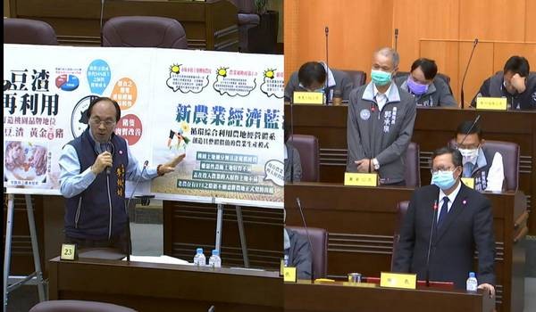 談到豆渣再利用及黃金豬議題,李柏坊表示,桃園黑毛豬食用豆渣,成長快速、肉質優良,可以稱作桃園的黃金豬,他已經申請了相關專利,不但可以去化豆渣餘料,又可降低養豬業者飼料成本,期盼農業局研議推廣豆渣運用。市長鄭文燦表示,桃園已在推動桃園豬及台灣豬雙標章,目前豆渣養豬及養豬協會已有合作,未來行銷在地豬肉,也將包括健康鮮美的黃金豬在內。