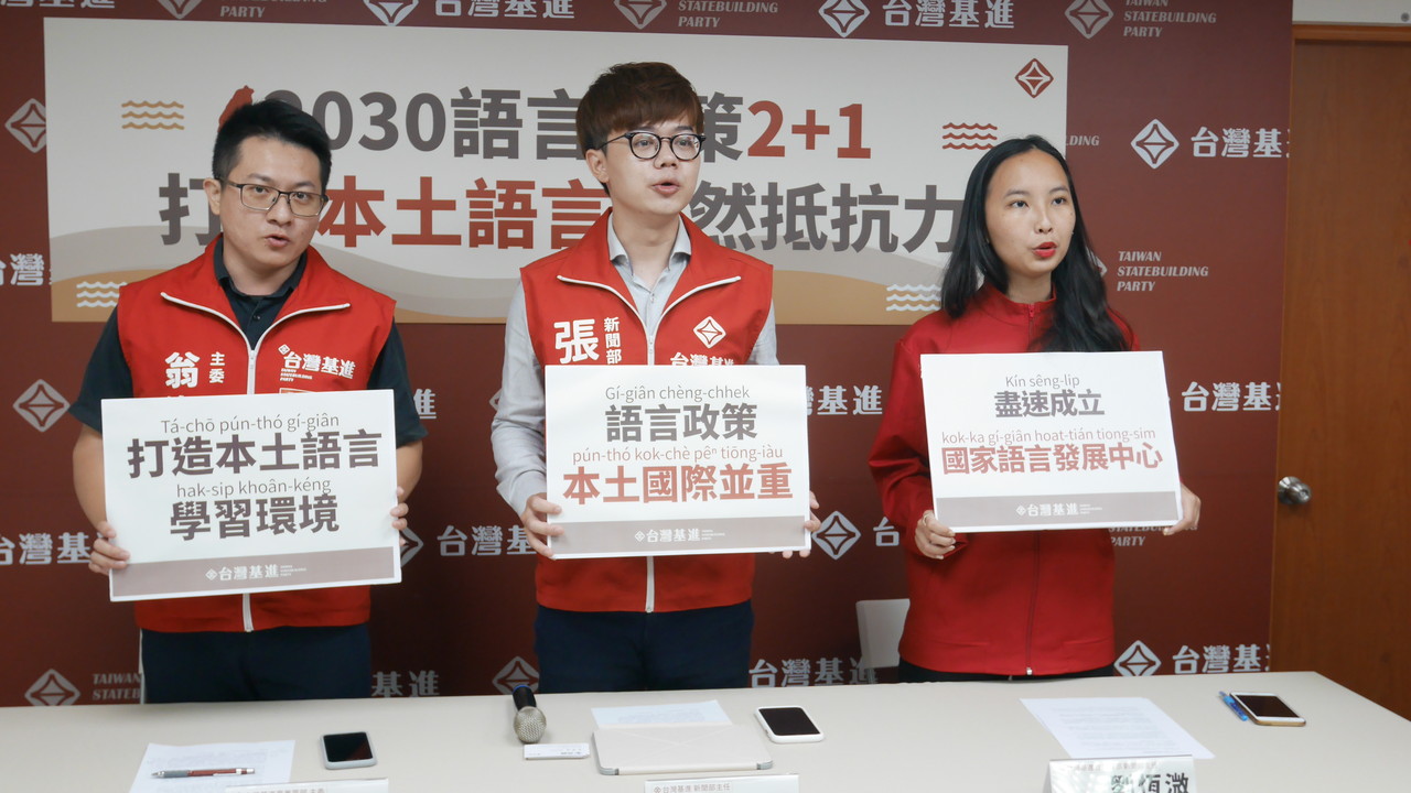 台灣基進30日上午召開「2030語言政策 2+1,打造本土語言天然抵抗力」記者會,台灣基進新聞部主任張博洋表示,2030雙語國家政策已經全面開跑,但不希望未來的台灣只剩下「雙語」,台灣要成為獨立自主的國家,除了看向世界,更要認識自己的根。