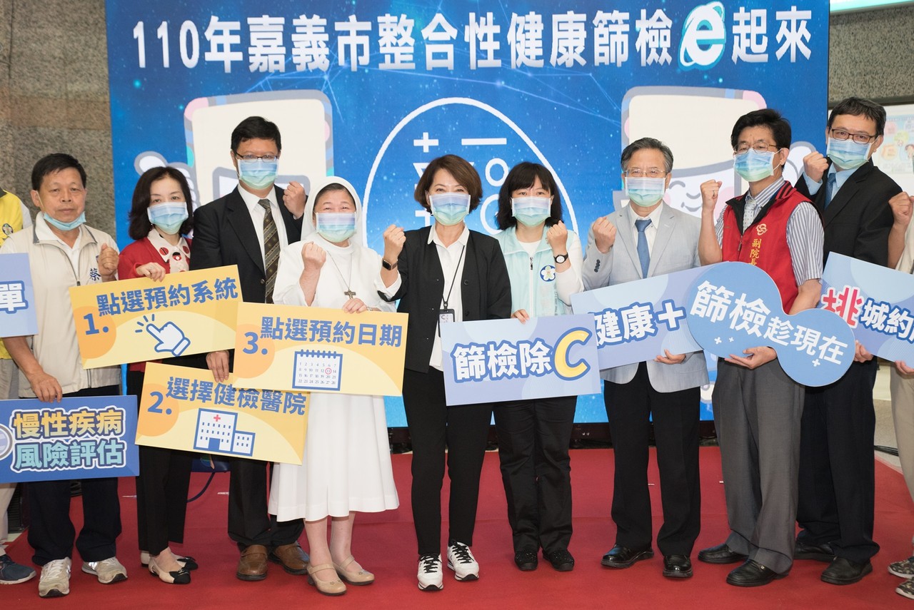 110年嘉義市民整合性健康篩檢新增線上預約功能,篩檢前48小時預約,縮短候檢時間,服務品質再升級。即日起至10月15日止,由聖馬、嘉基、嘉榮、嘉醫、陽明及慶昇提供市民免費整合性健康篩檢服務,在天主教聖馬爾定醫院舉辦「整合性健康篩檢e起來」記者會,由副市長陳淑慧代表市長黃敏惠出席,並呼籲市民早期發現異常早期治療,參加免費健康篩檢是最好的選項。