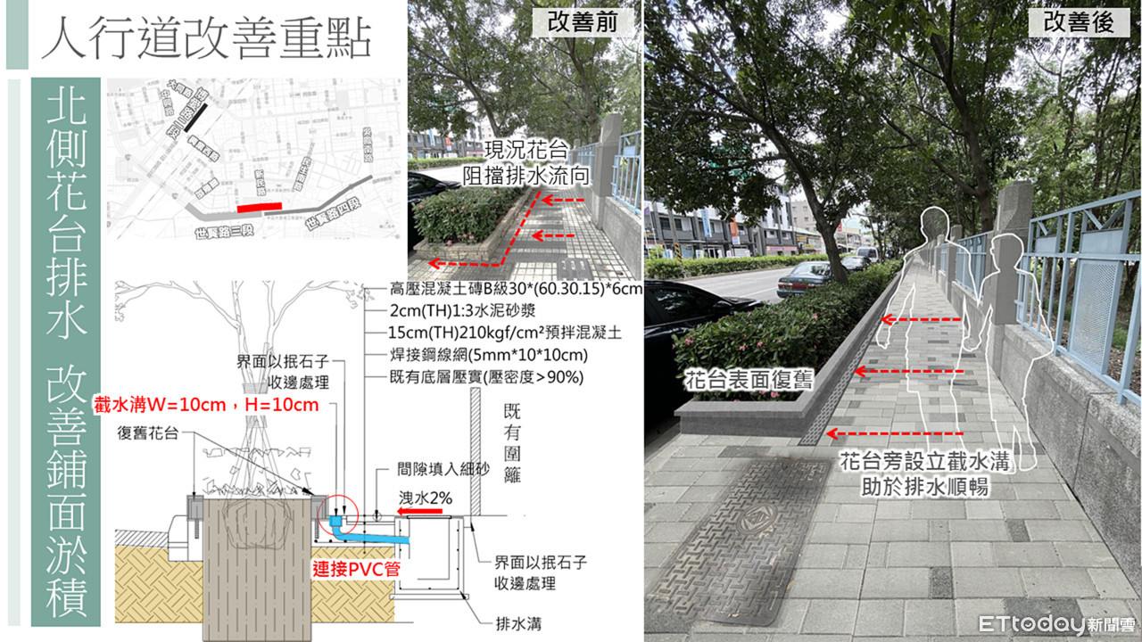 ▲世賢路三段人行道改善工程獲前瞻補助 建立以人為本的道路環境與人行空間。(圖/嘉義市政府提供)