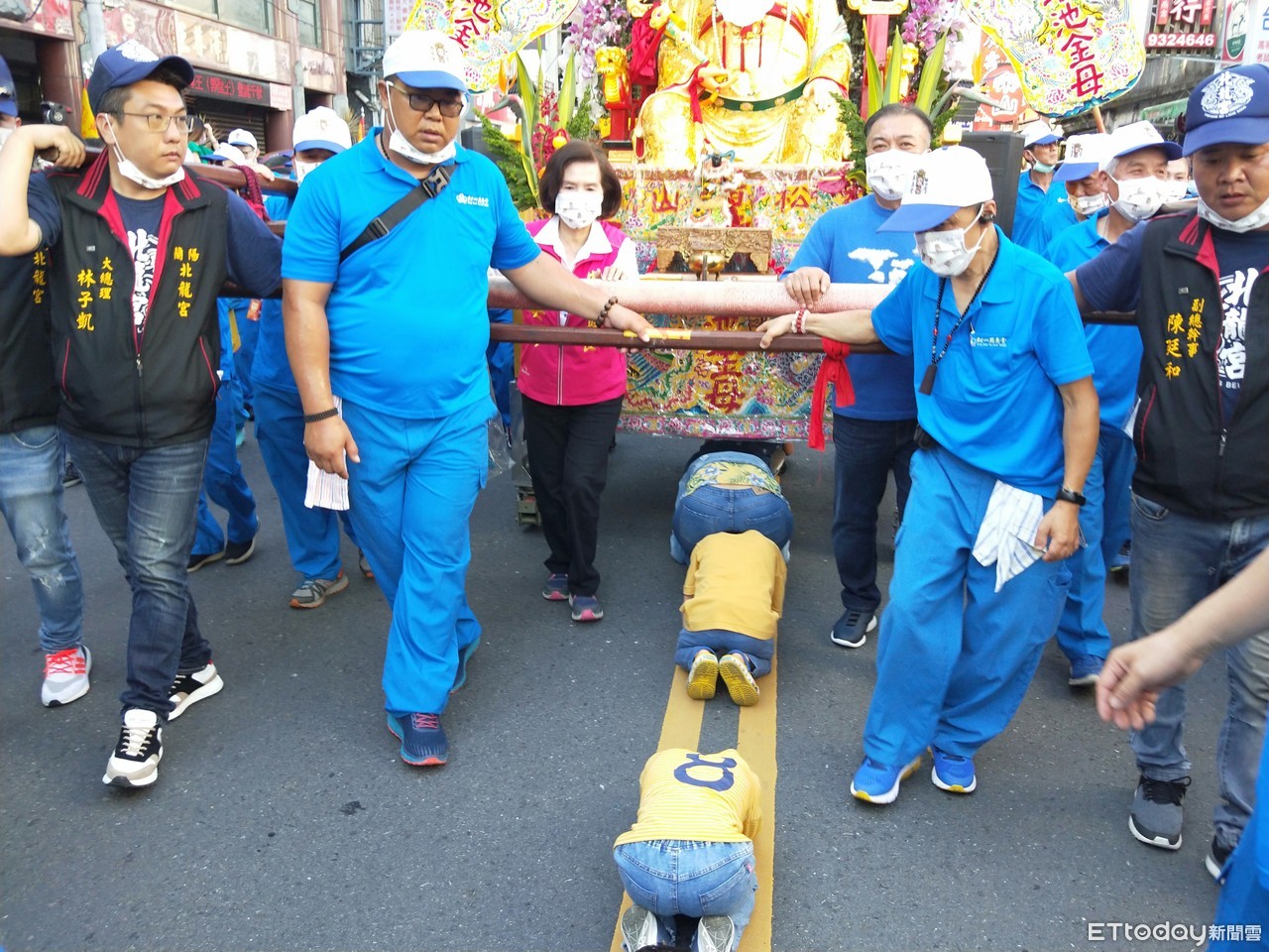 松山慈惠堂「2021台北母娘文化季保民遶境嘉年華」,於30日首度移駕宜蘭遶境祈福保安康,上萬信眾虔誠趴地鑽轎祈福,扶轎的信眾吳文松說,感謝母娘恩給殊榮。李姓信眾說,鑽轎是為闔家安康。