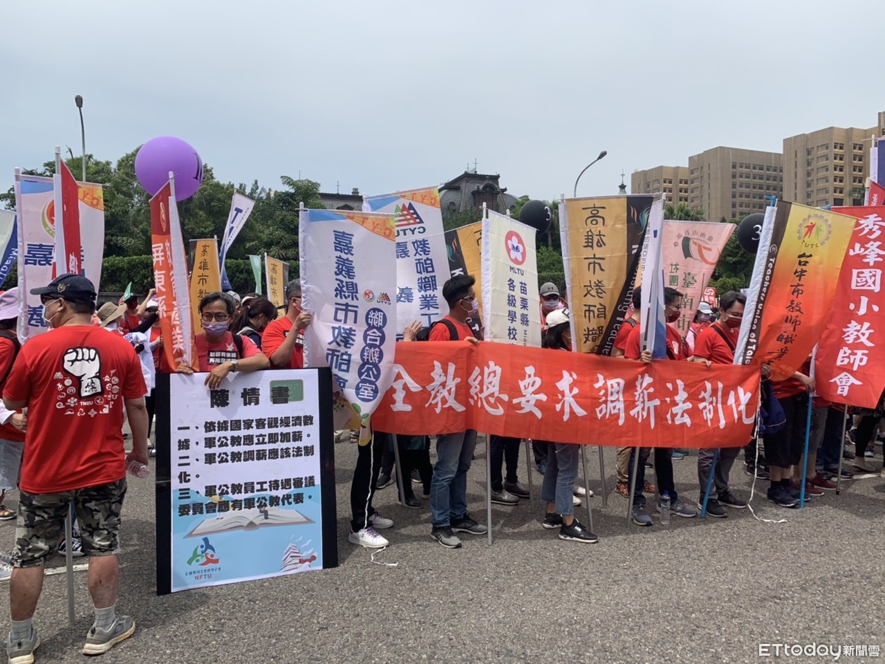 五一勞工大遊行今(1日)下午登場,遊行隊伍從凱道出發,民眾一路上怒吼「薪資要提高」。除了勞工外,全教總也領著教師們上街,要求政府正視教師權益,近10年來,軍公教人員僅調薪3%,遠遠跟不上物價上漲的幅度,因此上街抗議,表達教師們對政府的不滿。