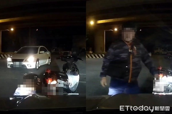 ▲▼騎士不滿後方小客車按喇叭,下車嗆聲「叭X小」。(圖/民眾提供)