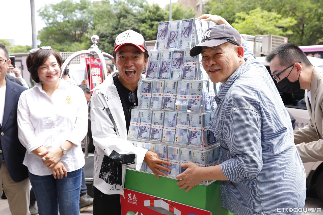 ▲憲哥、澎哥捧千萬真鈔造勢 東森直消電商猜錢賺10萬活動開跑。(採訪撰稿/記者胡至欣;攝影剪輯/記者姜國輝)