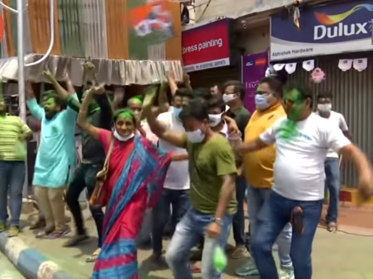 根據外媒影片顯示,選舉結果公布後,西孟加拉邦街頭聚集大批草根國大黨的支持者,眾人燃放鞭炮、歡唱狂舞,還在臉上塗抹象徵政黨的綠色顏料,完全無視於防疫社交距離,甚至有許多民眾沒戴口罩或是將口罩拉至下巴處,在全印度單日確診逼近40萬的嚴峻疫情下,恐怕又會釀成大規模群聚感染。