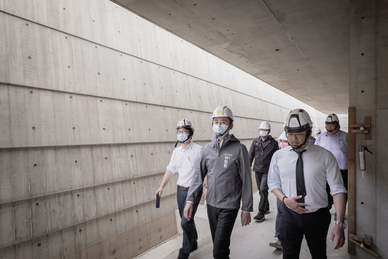 新竹市大坪頂納骨塔新建工程已獲得2019國家卓越建設獎最佳規劃設計類金質獎。工程自108年開工至今,目前進度已達6成。林智堅視察工程,他驚訝發現,建築團隊實驗各種材質才製作出「最佳清水模」,建物外牆、內部牆面「清水模」細節都不同,外牆有木紋、斜牆則是亮面等。他也登上觀景陽台,眺望竹市海岸線。