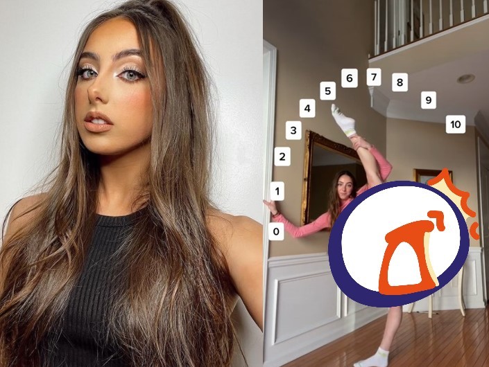 ▼愛兒波赫表演輕鬆開腿270度。(圖/翻攝自Olivia Alboher「TikTok、Instagram」)