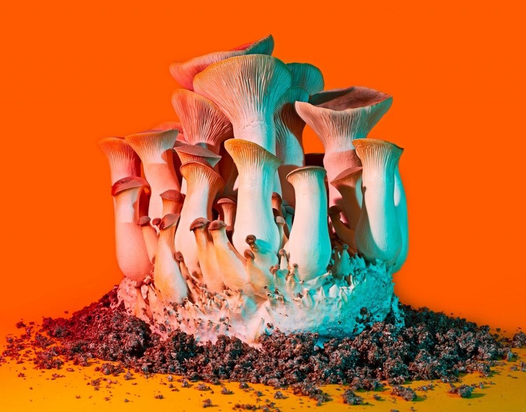 為此,Phyllis Ma 開始尋找來自紐約和柏林兩地的菌種,並在攝影的過程中逐漸熟悉不同菌種的特性。同時,觀眾也能透過作品,看見各種各樣的蘑菇品種,舉凡粉紅色、藍色、黃色的蘑菇,質地堅硬或是鬆軟的蘑菇,都曾出現在她的作品中,寓教於樂。「蘑菇是一個非常神奇的存在,它們生長在腐爛的物質中,卻能創造出美麗的樣貌,同時它又能與其他植物共生,蘊含著生存和創造雙重意涵。」Phyllis Ma 這麼說...