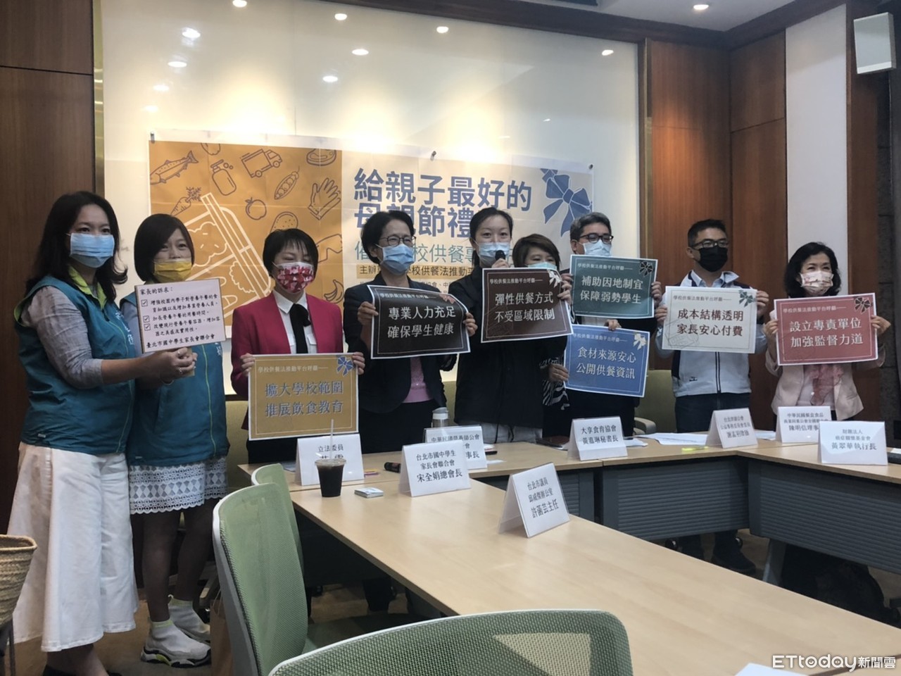 ▲大享食育協會、民進黨立委范雲召開「給親子最好的母親節禮物,催生學校供餐專法」記者會。(圖/記者林銘翰攝)