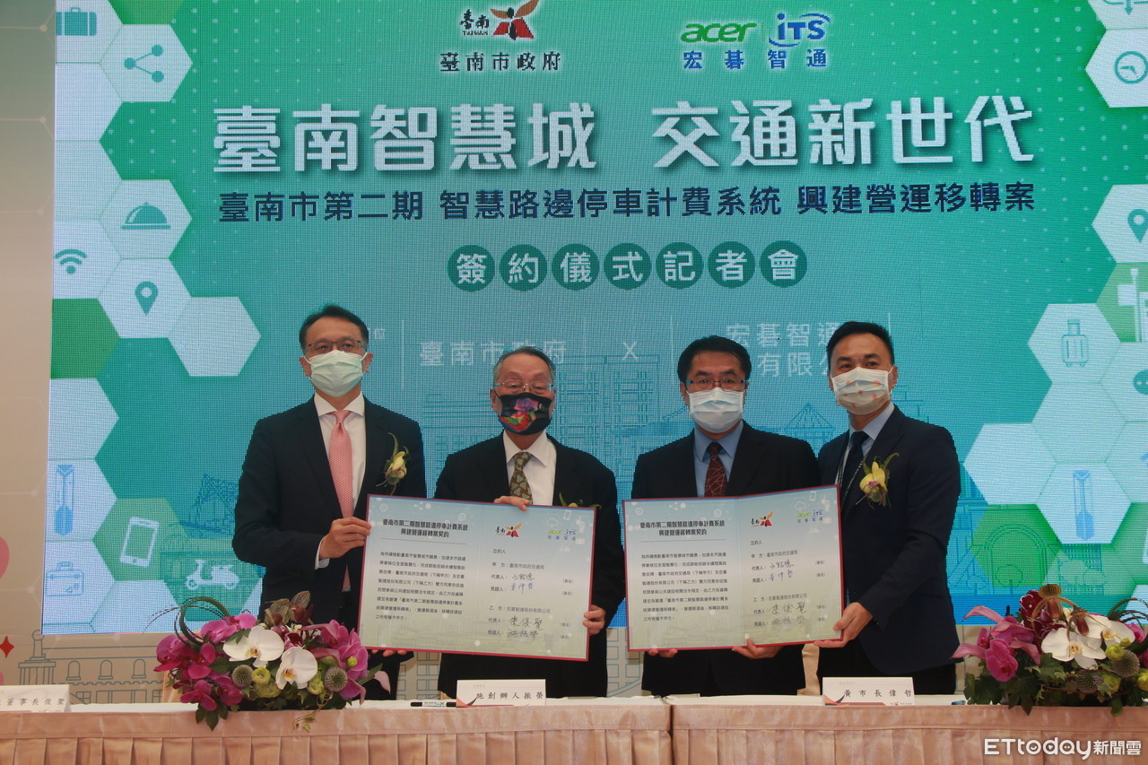 ▲台南市政府與宏碁智通公司簽定「台南市第2期智慧停車計費系統BOT案」。(圖/記者林悅翻攝,下同)