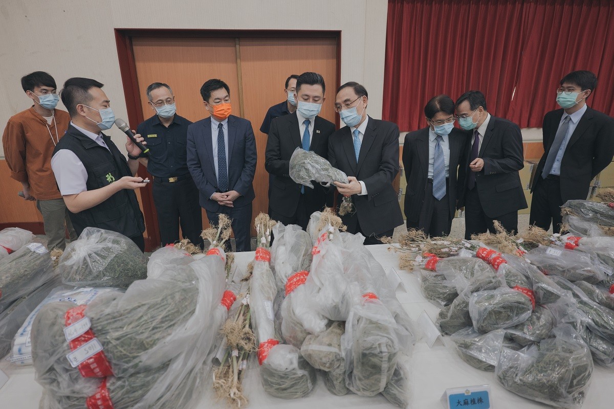 新竹市警局今在記者會擺放1540株乾燥大麻、更有多件大麻成品、大麻香菸,還有種植大麻所用培養土。因查獲大麻數量極多,高檢署襄閱主任檢察官陳維練、法務部參事顏迺偉、新竹地方檢察署檢察長郭永發、新竹地方檢察署主任檢察官陳玉華與新竹地方檢察署檢察官翁貫育都現身記者會。