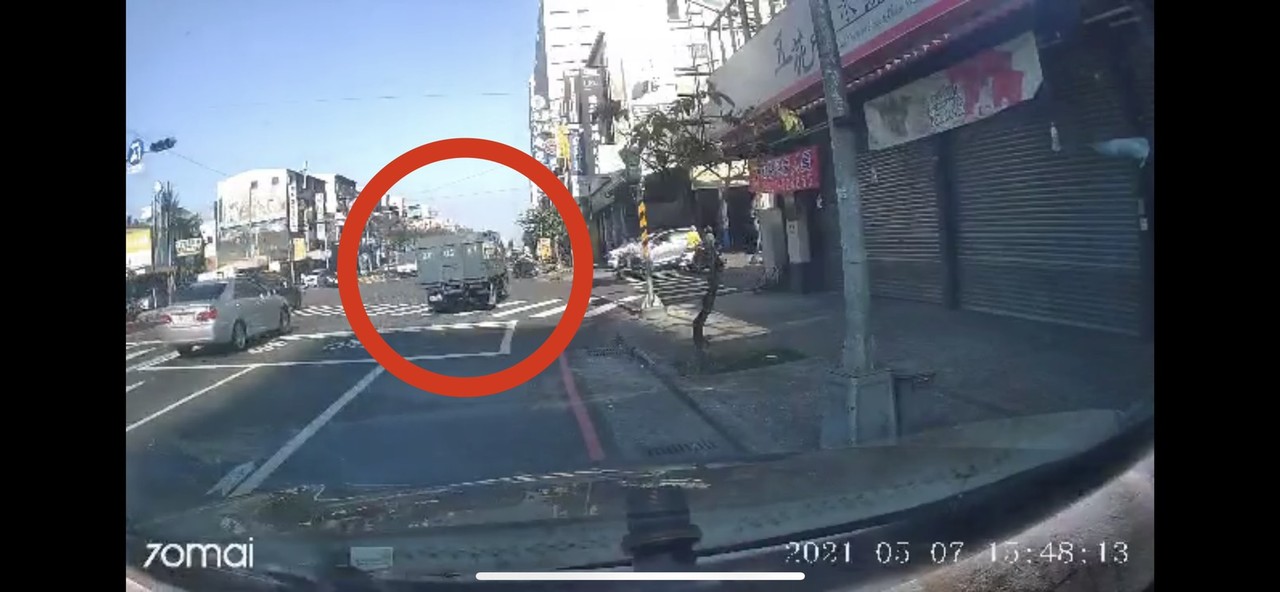 ▲民眾的行車記錄器拍下貨車肇事瞬間。(圖/記者黃子倩翻攝)